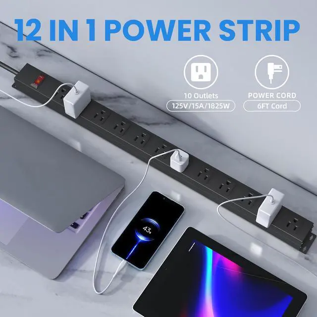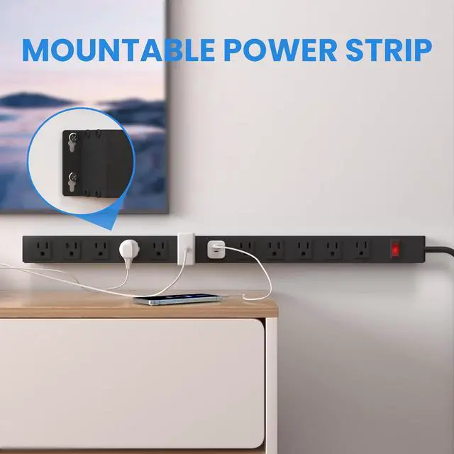 WALL MOUNTED DESIGN: Durable metal power strip has mounting holes on the top and bottom, which can be installed under the table, table leg, wall and other places arbitrarily. It is convenient and can be used for a long time.