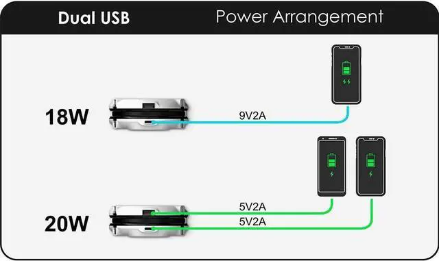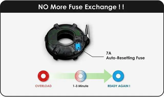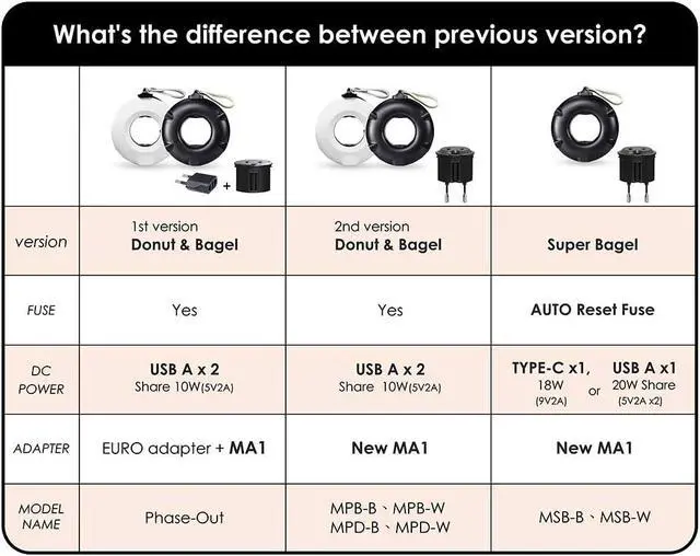 Support fast charge Type C and USB A - 18W (9V2A) or 20W share (5V2A x 2); 7A Auto Reset fuse; New MA1.