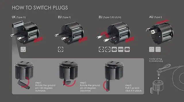 Supports 7 charging ports ( 5 sockets, 2 USBs)