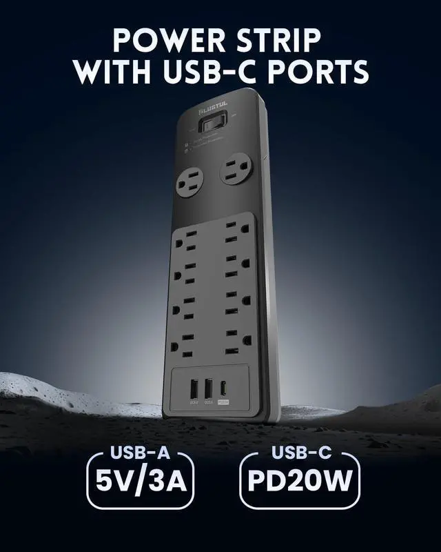 13-in-1 Power Hub Equipped with 10 AC outlets, 1 USB-C port, and 2 USB-A ports, this power strip provides all the connectivity you need to charge and power your appliances and mobile devices with ease.