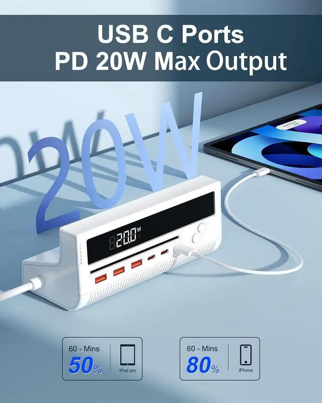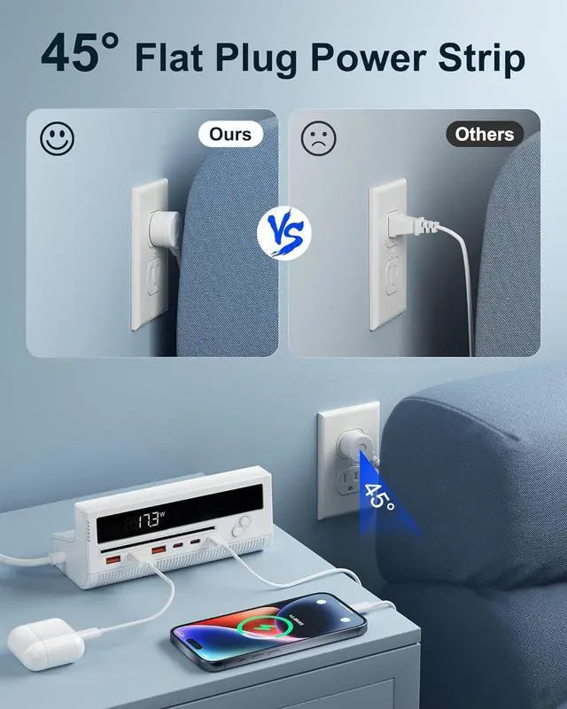 Cutting Down Wait Times: Experience lightning-fast charging speeds with PD 20W on C3 and up to QC 18W on A3 ports. Our power strip with USB C port gets your devices back to full power in no time, keeping up with your fast-paced lifestyle