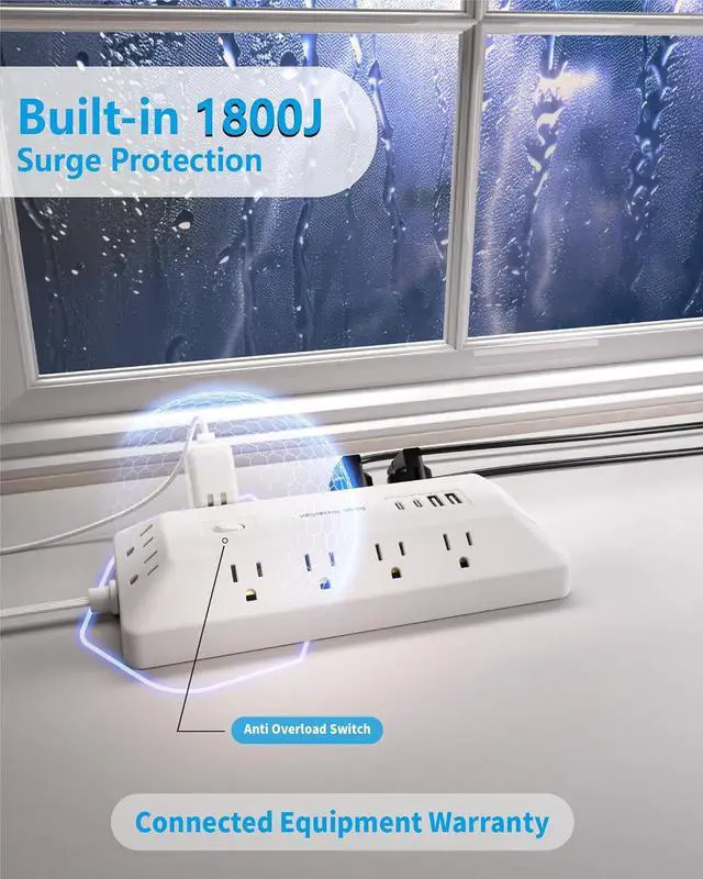 Multiple Security Protection: Our flat plug extension cord features an 8-point safety system, which includes surge protection, fire resistance, overload protection, and temperature control. Its switch illuminates green during normal operation but trips automatically to cut power in an overload (simply press to reset). This power strip with surge protection ensures complete safety for all your devices at home or in the office
