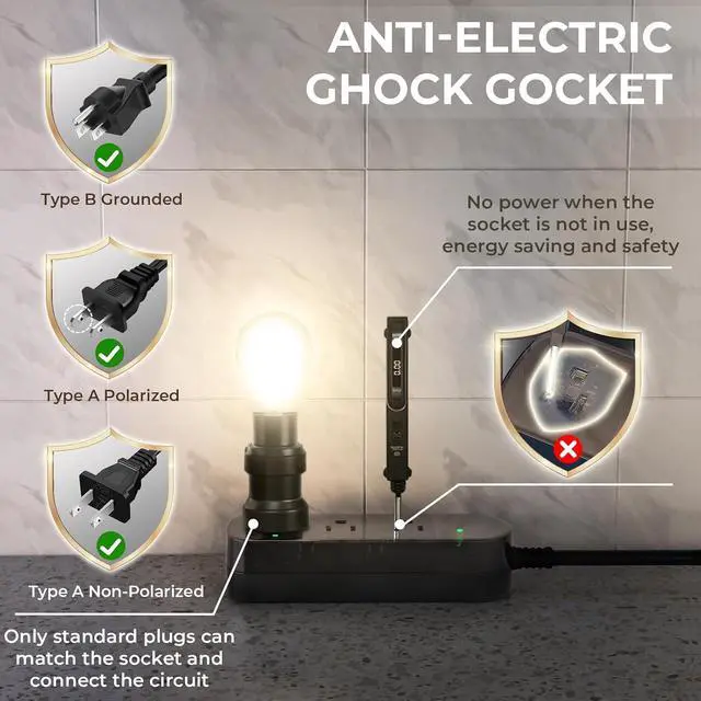 Safety Structural Design: Our patented socket has been designed with safety as a top priority. It is compatible with standard American plugs and is equipped with a safety lock where the plug needs to be fully inserted to energise. This limits access to unintended items and helps prevent potential electrocution.