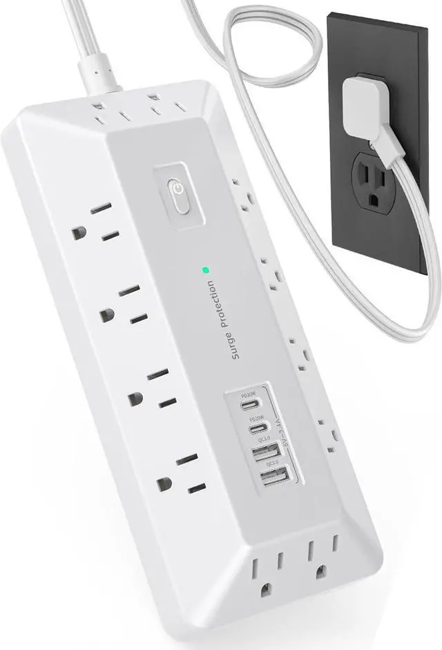 USB Ports: This power strip supports 12 AC outlets, 2 USB-C, 2 USB-A, plus a button switch. It can replace traditional phone chargers, keeping your desk tidier