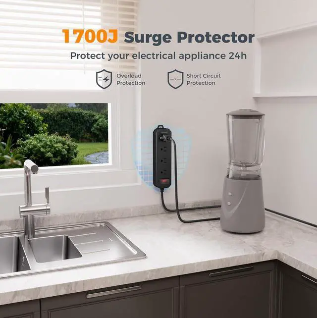 1700J Surge Protector Outlets: Equipped with overload protection and short circuit protection; Black power strip with surge protection 1700J safely protects your electronics from power surges caused by storms or electrical faults