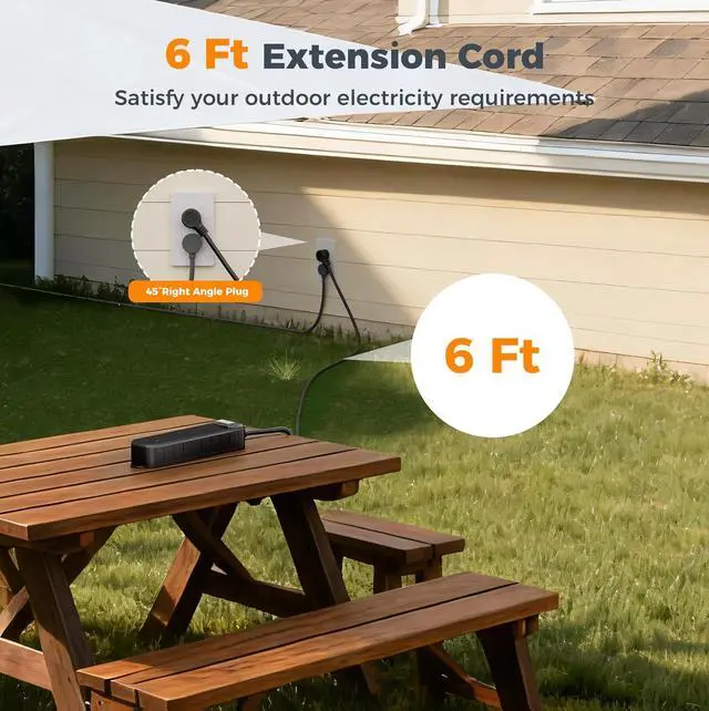 Outdoor Waterproof Power Strip: TESSAN outdoor surge protector waterproof is IPX4-rated for water-resistance, ensuring it works well even in humid environments, water splash or rain; Water entering the socket safely drains through the back drain hole