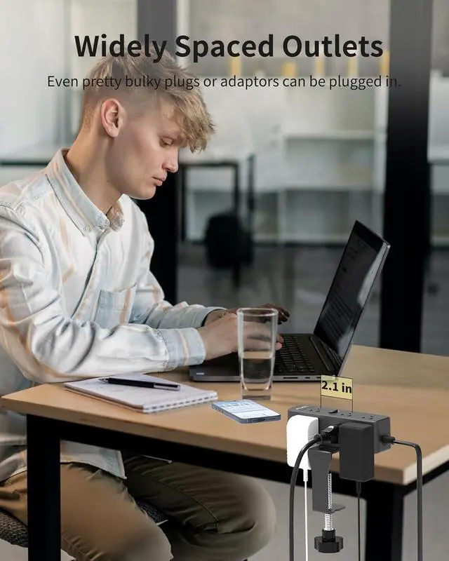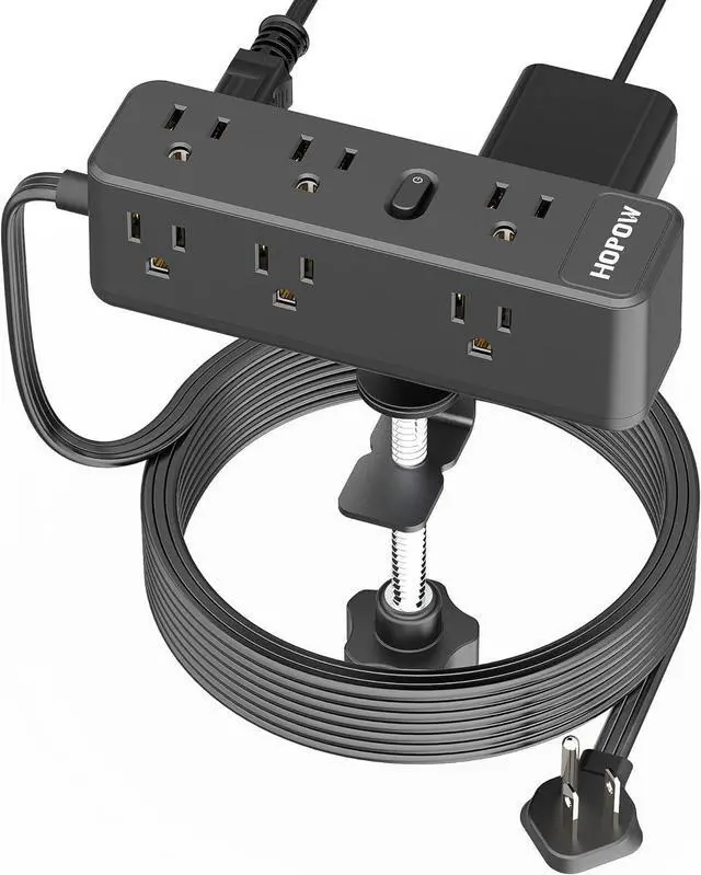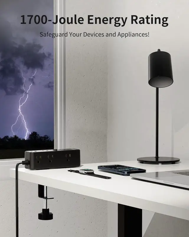 9-in-1 Desk Clamp Power Strip & Space-Saving Design: Equipped with 9 AC outlets, this desk power strip turns 1 outlet into 9, allowing you to power 9 devices simultaneously to save more time. Also, the surge protector has outlets on three sides, compact design, which takes up less space while making the desktop look uncluttered and allowing for more devices to be charged.