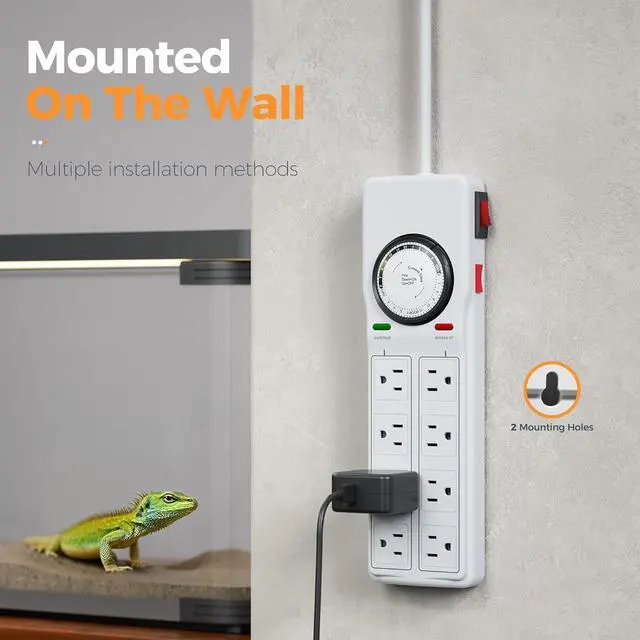 Mountable and Stable: There are 2 mounting holes on the bottom of outlet timer indoor, timer plug extension outlet can be mounted on the wall or the side of the table, suitable for aquarium lighting, plant cultivation, outdoor light strings, etc