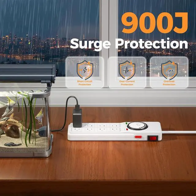 900J Surge Protector: This power strips with surge protection can protect your fish tank lamp aquarium, TV, and other electronices from power surge attacks that might be caused by the storm, providing you with a safe charging environment