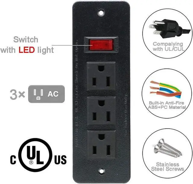 Build in power strip suitable for sofa table behind with ledge, drawer, cabinet, desk, kitchen island, nightstand, countertop, workbench, shelf