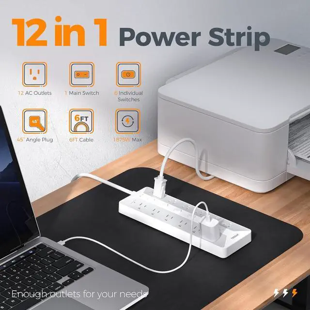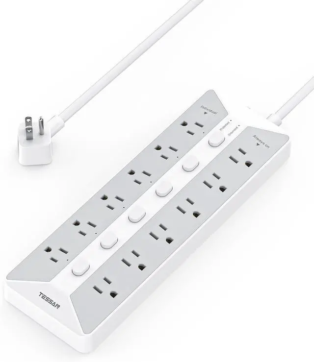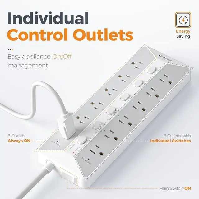 Individual Switches: This heavy duty power strip features 12 AC outlets with 1 main switch and 6 independent switches, allowing individual control of appliances and energy savings; it also avoids the hassle of plugging and unplugging