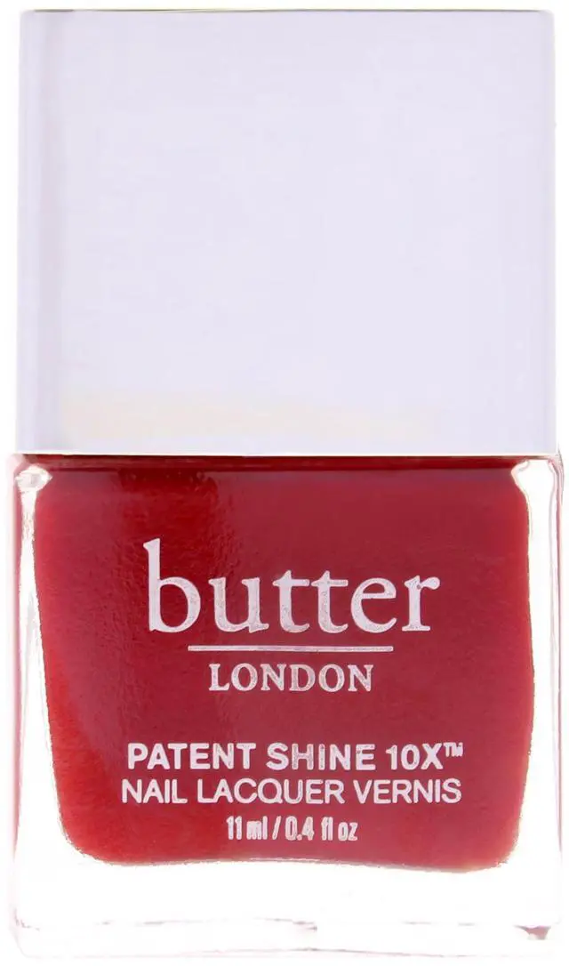 Butter London Patent Shine 10X formula is loaded with ingredients proven to promote brighter, stronger, healthier-looking nails. The patented Shock Resistance Polymer Technology delivers a gel-like finish and undeniable shine with up to 10 days of wear. Radiant Curing hardens and dries polish with the ease of natural light. From wedding nails to birthday brunch, use the unique dense, curved brush applicator which hugs nails for flawless, full-colour coverage that coat nails brilliantly after the first coat.