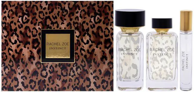 TRUST YOUR INSTINCTS. For the savvy, sophisticated woman, natural instinct and intuition are the greatest assets. The Instinct gift set includes three luxury tuberose musk perfumes for women, in three sizes for any and every occasion. | CAPTIVATING FLORAL MUSK SCENT. Immerse yourself in this sophisticated, long-lasting floral musk perfume, with top notes of bergamot and orange blossom, middle notes of jasmine, freesia, and lily of the valley, and bottom notes of musk. | A LONG LASTING PERFUME FRAGRANCE. Indulge in delicious fragrance all day long. This parfum for women is formulated to for long-lasting scent payoff when misted onto skin or hair, enveloping you in the Instinct fragrance from day to night. | DISCRETE YET EYE-CATCHING DESIGN. These signature bottle designs are a trendy addition to any fragrance collection. Styled with traditional leopard print, each travel size perfume bottle features a fine-mist tip to evenly disperse each spray. | MADE FOR EVERY WOMAN, INSPIRED BY EVERY