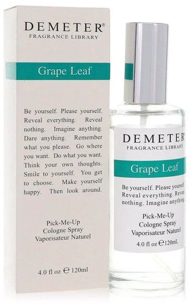 : br Within a vineyard, you'l smell the fragrance of the grape leaves as they warm beneath the sun. Demeter Grape Leaf takes that smell and puts it into a bottle. The grape gives it a subtly fruity and sweet scent, while the greenery gives a fresh and natural fragrance.