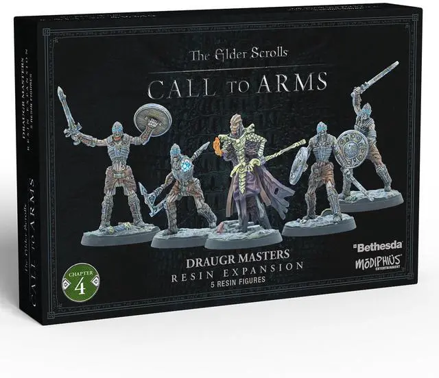 The Elder Scrolls: A Call to Arms Miniatures Core Rules and Chapter 4 Card Pack. 2023 Bethesda Softworks, a Zenimax Media Company. 5 unpainted, unassembled miniatures. 32mm scale. /p