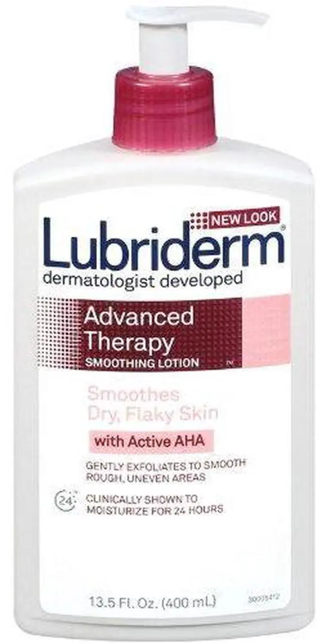16-fluid ounce bottle of Lubriderm Advanced Therapy Fragrance-Free Daily Moisturizing Lotion + Pro-Ceramide with Vitamin E and Pro-Vitamin B5 itchy, extra-dry skin to help strengthen skins moisture barrier | Specially designed unscented lotion intensely hydrates itchy, extra-dry skin. The soothing formula of the body lotion with Pro-Ceramide penetrates within skin's surface to deliver 48-hour clinically proven moisturization | Body lotion is formulated with vitamins E and Pro-Vitamin B5 which moisturizes to help strengthen skin's moisture barrier. The non-greasy lotion transforms itchy, extra-dry skin into healthier looking, more resilient skin | Clinically- and dermatologist-tested lotion is hypoallergenic and fragrance free. The daily hand and body moisturizer suitable for sensitive skin is formulated free of parabens, phthalates and dyes | Lubriderm, a dermatologist developed, advanced therapy lotion absorbs quickly and leaves a clean, non-greasy feel. To use, smooth on hands and bo