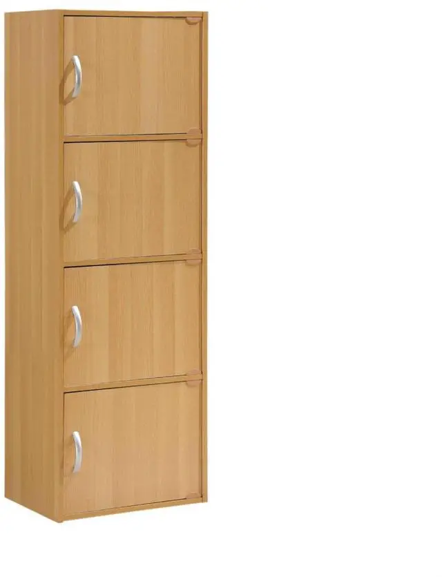 pHID4 BEECH Hodedah 4-Shelf, 4-Door Bookcase in Beech, Organize your home or office space with the Hodedah Multi-Purpose Bookcase. Its slim design makes it versatile for corners and limited spaces in multiple rooms. Perfect for organizing books, stationary, papers, folders and files in your office. You can place it in your child's bedroom to store toys, folded clothes, shoes and much more. You can keep it in the kitchen to store can goods, small appliances, pots and pans. Use this unit in the laundry room to store your detergent and other laundry supplies.