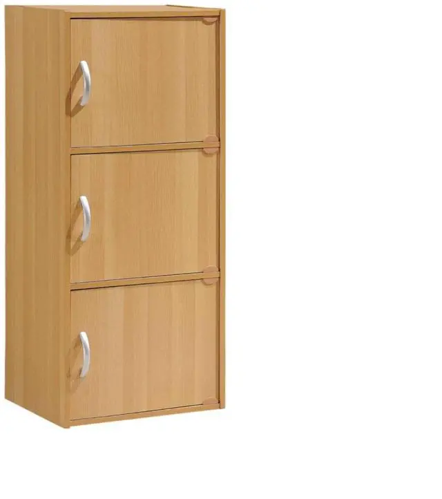 pHID3 BEECH Hodedah 3-Shelf, 3-Door Bookcase in Beech, Organize your home or office space with the Hodedah Multi-Purpose Bookcase. Its slim design makes it versatile for corners and limited spaces in multiple rooms. Perfect for organizing books, stationary, papers, folders and files in your office. You can place it in your child's bedroom to store toys, folded clothes, shoes and much more. You can keep it in the kitchen to store can goods, small appliances, pots and pans. Use this unit in the laundry room to store your detergent and other laundry supplies.
