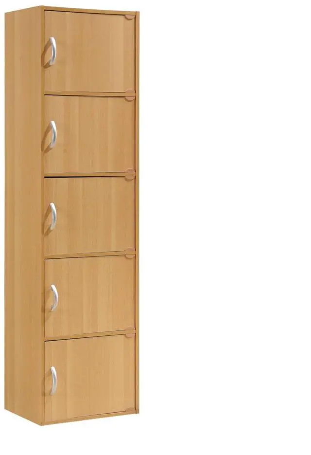 pHID5 BEECH Hodedah 5-Shelf, 5-Door Bookcase in Beech, Organize your home or office space with the Hodedah Multi-Purpose Bookcase. Its slim design makes it versatile for corners and limited spaces in multiple rooms. Perfect for organizing books, stationary, papers, folders and files in your office. You can place it in your child's bedroom to store toys, folded clothes, shoes and much more. You can keep it in the kitchen to store can goods, small appliances, pots and pans. Use this unit in the laundry room to store your detergent and other laundry supplies.