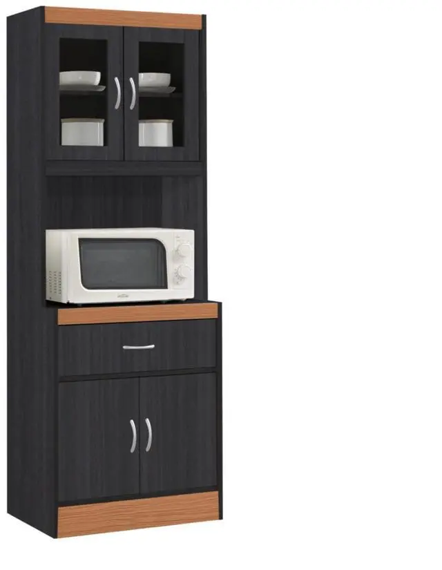 pHIKF96 BLACK-BEECH Hodedah Kitchen Cabinet with 1-Drawer, plus Space for Microwave in Black-Beech, Running out of cabinet space in your home, The Hodedah China Cabinet is a simple yet versatile piece that is sure to add functionally to your kitchen. Standing tall this unit features a large open shelf space at the center to house your microwave or toaster oven. Transparent doors on the top opens to reveal two shelves, ideal for displaying fancy dinnerware. For extra storage there is another enclosed cabinet below to store small appliances, pots and pans.