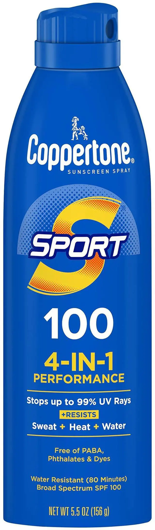 Whichever outdoor activity youre passionate about, Coppertone Sport Sunscreen Spray is on your team. Designed to stay on strong when you sweat, this high-performance spray sunscreen SPF 100 protects you from the sun with a durable and water resistant sunscreen formula (80 minutes). This Coppertone spray sunscreen offers Broad Spectrum UVA/UVB protection in a moisturizing formula, and has a continuous sprayer for application on any angle. Each sunscreen Coppertone creates follows a tradition of trusted, quality sun protection products. Coppertone has been providing continuous innovation for more than 75 years, and is voted the most trusted sunscreen brand.