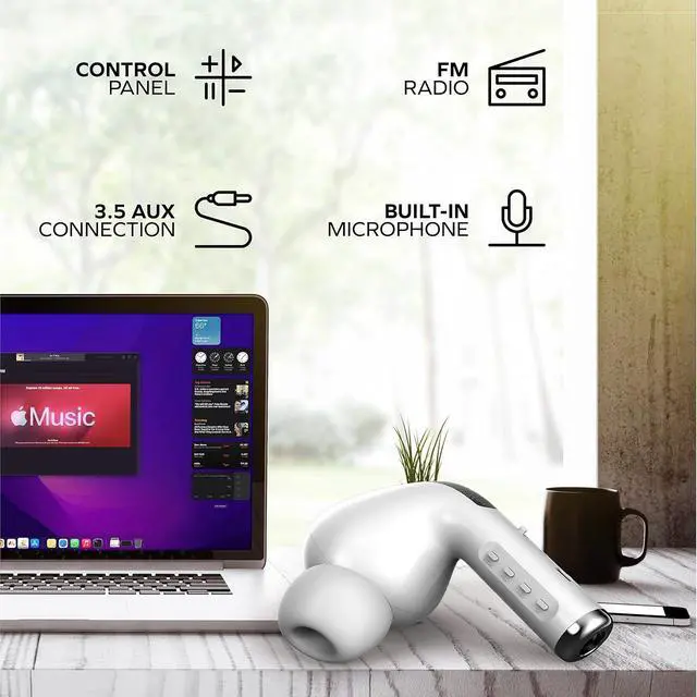 Giant Earbud Design That Turns Heads: A unique earbud-shaped Bluetooth speaker designed to look like an oversized wireless earbud. Fun, bold, and instantly recognizable great for desks, bedrooms, gaming setups, dorm rooms, and tech lovers who enjoy standout gadgets.