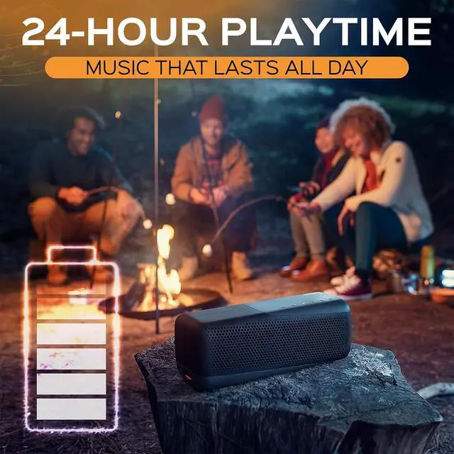 KEEP THE PARTY GOING: You get up to 24 hours of playtime from a fully charged speaker, and the power bank function lets you charge connected devices without stopping the music.