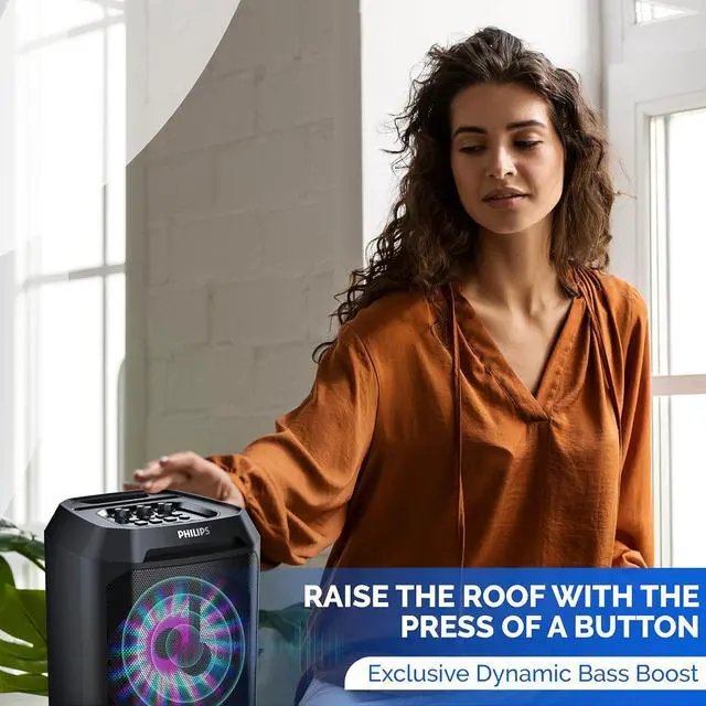 Mood-Boosting Audio Philips' exclusive Dynamic Bass Boost takes the bass on your large Bluetooth party speaker to new depths for vivid, powerful sound. Set the tone for any get-together or daily soundtrack.