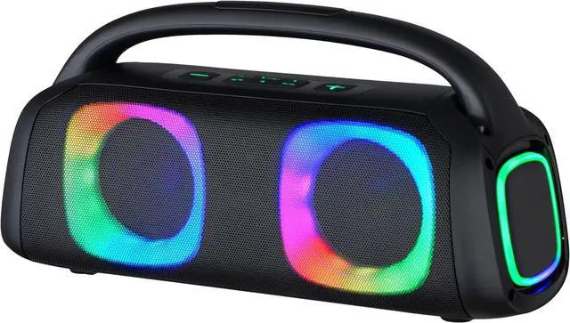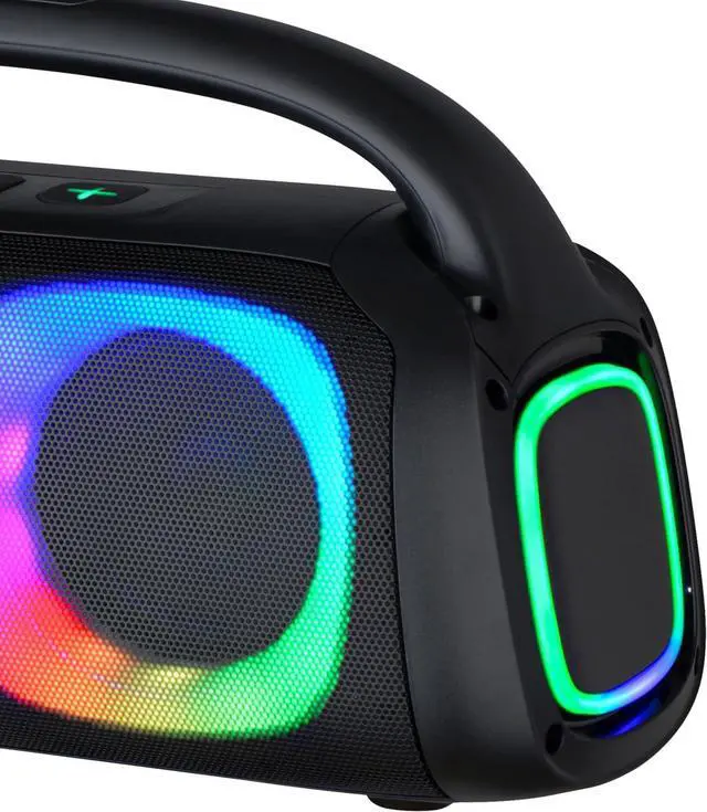 Dive into a world of vibrant ambiance with various modes of RGB Lighting, setting the mood for any occasion. Enjoy unparalleled connectivity with A2DP Bluetooth technology, effortlessly streaming music from any Bluetooth-enabled device. Versatile inputs including USB, Micro SD Card, and FM radio, combined with guitar and mic inputs, offer limitless entertainment possibilities. Whether it's your PC, tablet, TV, or other audio devices, our speaker's Line-in function ensures compatibility across the board. Crafted with precision and power, featuring a Bluetooth Version V5.1 and two 5.25" speakers, delivering a robust RMS Power Output of 40W at 4. The 7.4V, 3000mAh battery guarantees hours of uninterrupted playtime, with a quick charging time of 5-6 hours. Experience a frequency response of 40HZ-20KHZ, ensuring every note is delivered with stunning clarity, while the Bluetooth Connecting Range of 10m provides flexibility in placement. Compact yet commanding, our speaker boasts dimensions of 19.016(L) X 7.559(W) x 9.803(H) in, making it the perfect companion for any adventure or gathering. Elevate your audio experience with our Advanced Bluetooth Speaker where innovation meets unparalleled performance.