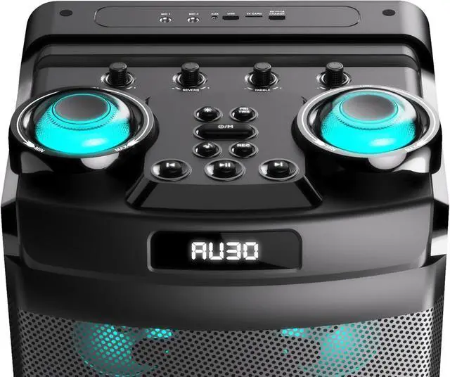 : Includes wireless mic, remote control, LED party lights, and full sound controls. A powerful speaker bluetooth option that replaces small bluetooth speaker or mini speaker setups with a true loud bluetooth speaker experience.