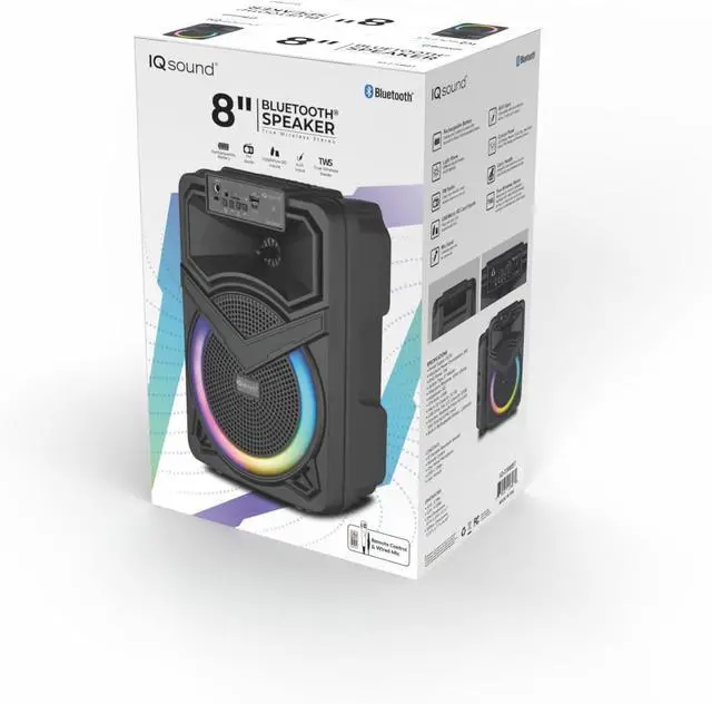 , & : 8" woofer and active speakers design deliver powerful, balanced audio. Use it as a PA speaker system or Bluetooth speaker loud enough for indoors or outdoors. Built-in carry handle makes this portable PA system easy to move anywhere.