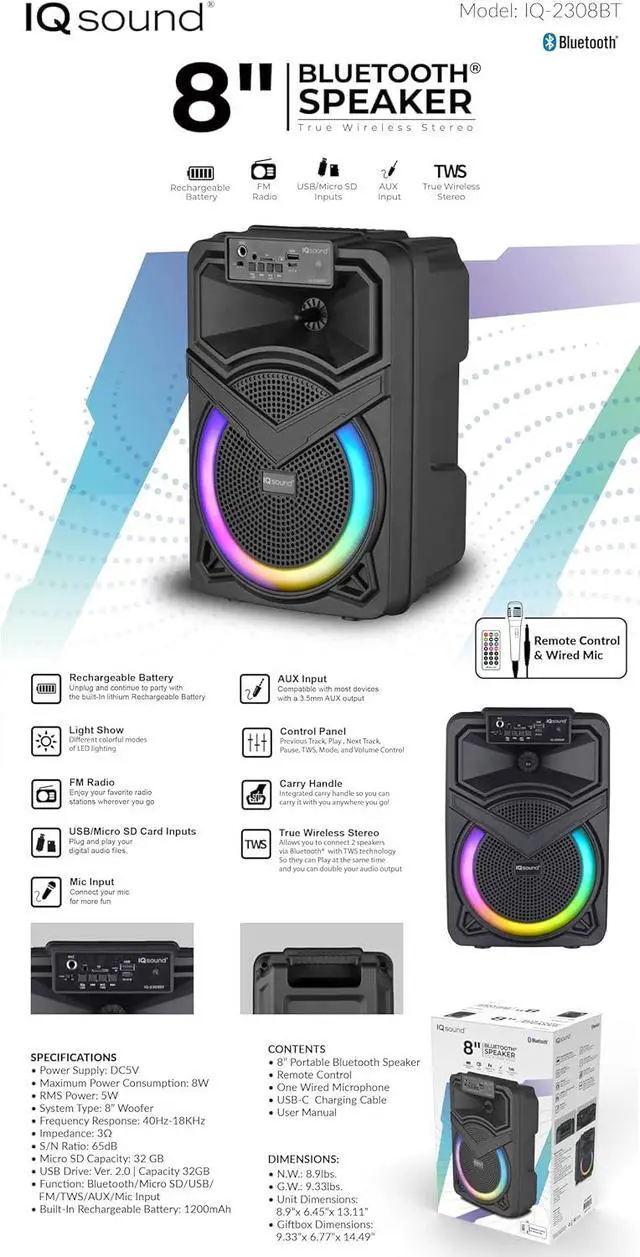 & : Built-in microphone input turns this into an instant powered speaker for announcements, karaoke nights, or small gigs. Ideal as a Bluetooth speaker with subwoofer punch for parties, home entertainment, or outdoor fun.