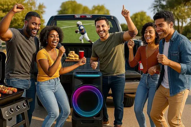 & : Get lost in the 6-band equalizer, 100W RMS power, and crystal-clear audio with a 40Hz-20KHz frequency range. Plus, the LED light show syncs with your beats, turning any space into a party-ready venue!