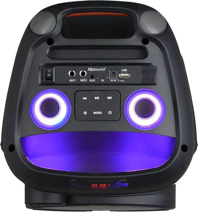 & : Equipped with 2 microphone inputs and a wireless microphone, this speaker system is perfect for karaoke nights, speeches, or presentations. The built-in rechargeable 3000mAh battery provides up to 6 hours of playtime for long-lasting events!