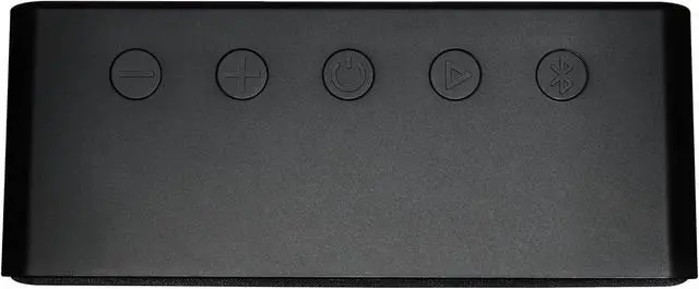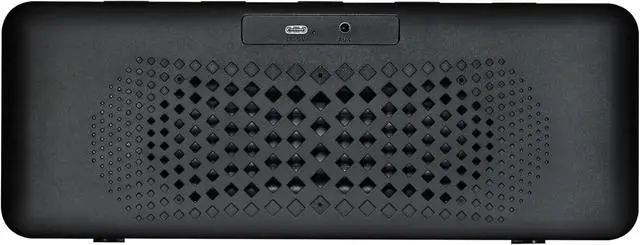 The durable housing is outfitted with an elegant fabric grille. Power, play/pause, volume and hands-free calling buttons are located on the top of the speaker for easy access, with the built-in mic (for making calls via a paired smartphone) conveniently located on the front of the speaker next to the power LED. A 3.5 mm (1/8") jack is available on the back of the speaker, allowing you to listen to audio from a wired device.