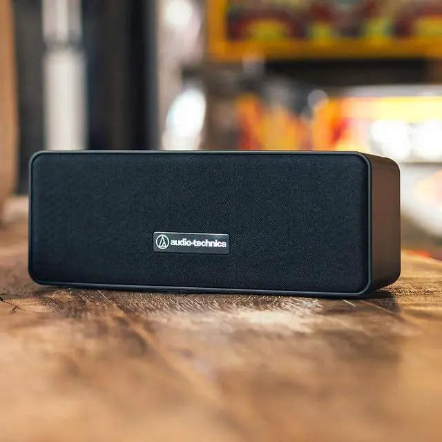 AT-SP65XBT Wireless SpeakerThis portable Bluetooth wireless speaker makes it easy to enjoy high-quality music playback or set up a speakerphone wherever you are. Measuring 10.6" W x 4.1" H x 4.5" D, the speaker is equipped with two 3" full-range drivers and a passive radiator to deliver clear, powerful audio with enhanced bass.