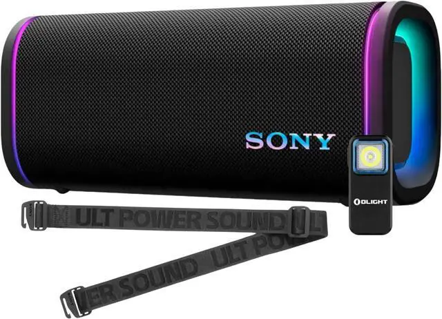Bundle Includes: Sony ULT FIELD 5 Wireless Portable Speaker IP67 Waterproof with 25H Battery and Bass Boost (Black) OLIGHT Oclip Rechargeable Clip-On with White and Red Light (Black)