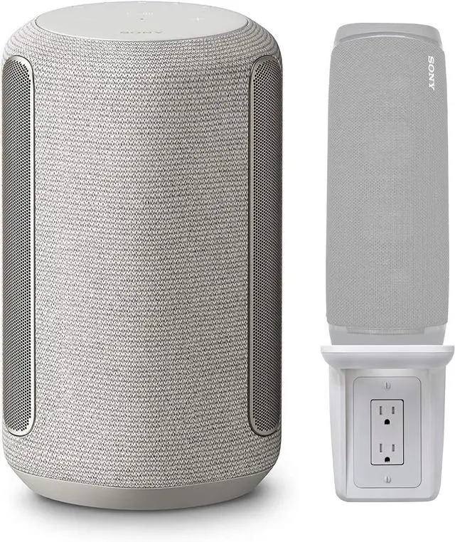 Bundle Includes: Sony SRS-RA3000 Wi-Fi-Enabled 360 Reality Audio Wireless Speaker with Ambient Room-Filling Sound (Light Gray) and Multi-Purpose Outlet Wall Shelf with Built-In Cable Management (White)