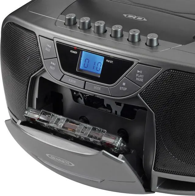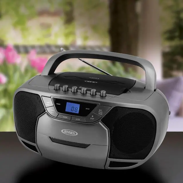 1 watt power output Frequency response: 100 Hz to 10 kHz Top-loading CD player/MP3 CD player with multifunction LCD display with blue backlight CD-R/RW compatible Skip/search, forward, back, and repeat 1 or all