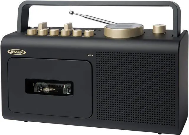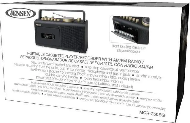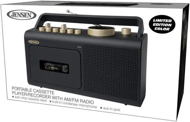 Built-in Condenser Mic - Auto-stop Cassette Player Recorder, Built-in Fold Down Carrying Handle, FM Swivel Telescopic Antenna