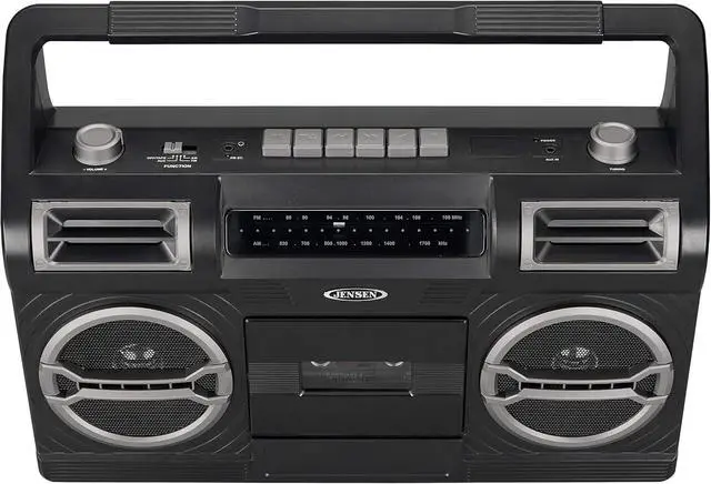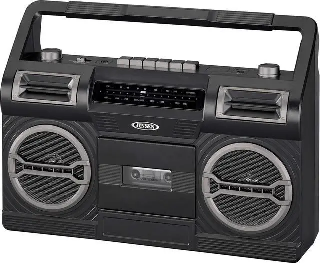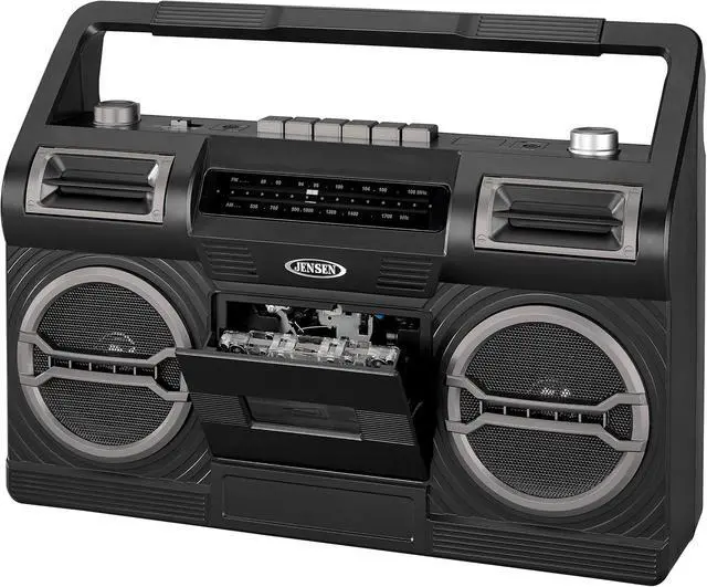 Cassette player/recorder with play, rewind, fast-forward, pause, stop, record, and eject
