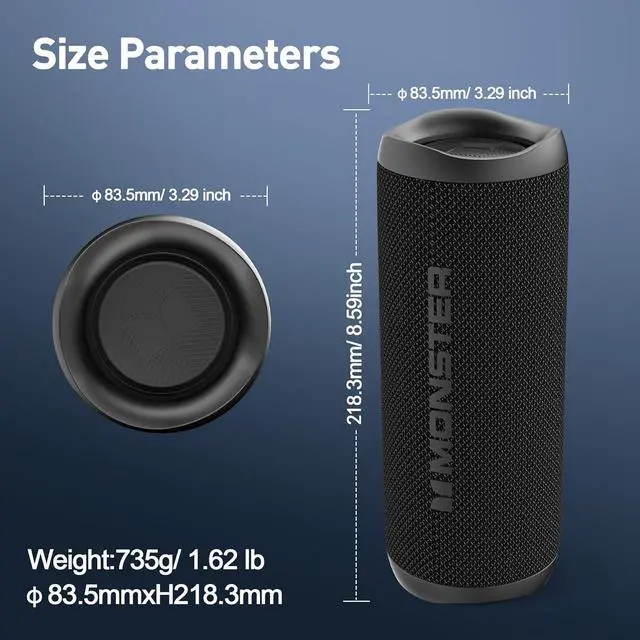 Waterproof speakers - Monster Bluetooth speakers are rugged and durable, IPX8-grade, with splash-proof, rain-proof, and suitable for shower rooms, pools or beachsides, and even rain-drying. Make it the perfect choice for outdoor adventures. Perfect for parties, poolside parties, beach trips, camping or hiking, this lightweight portable speaker is easy to fit into your backpack, stick to your bike, or hang anywhere with a braided carry belt.