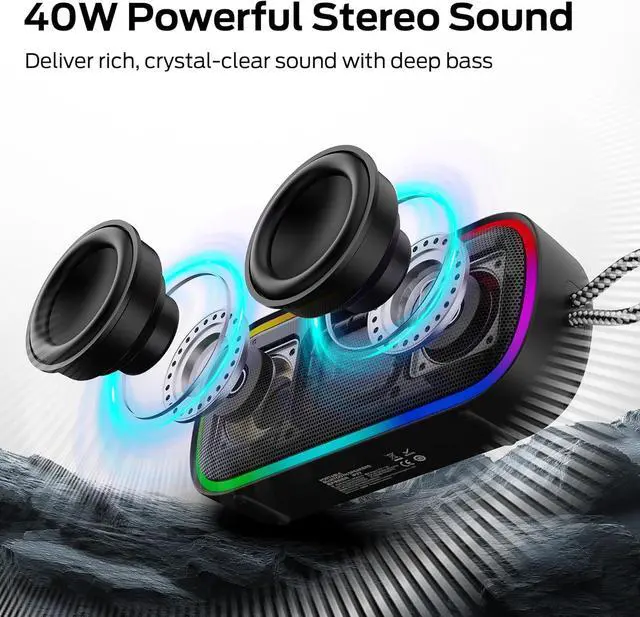 40W Immersive Sound + Dynamic RGB Lights: Dual drivers deliver rich highs and powerful bass (40W peak output), with vibrant RGB lighting that pulses to your musicperfect for parties, workouts, or creating the right atmosphere.
