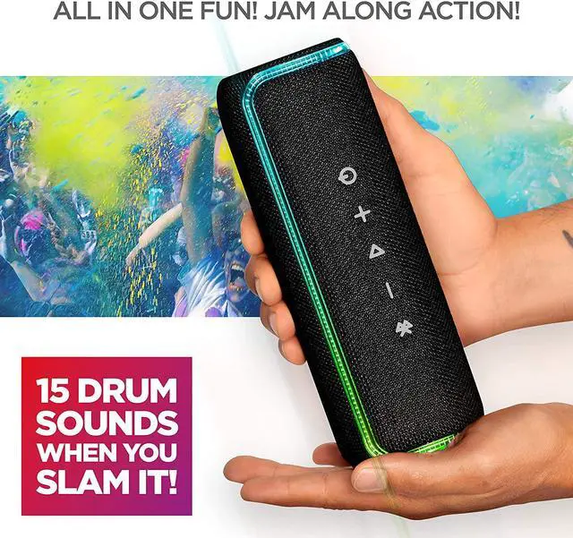 A Great Kids Bluetooth Speaker - Pick up Slam Jam while the music is playing and slam it to create exciting drum sounds with 15 different sounds; floating Bluetooth speaker specification for those just-in-case moments