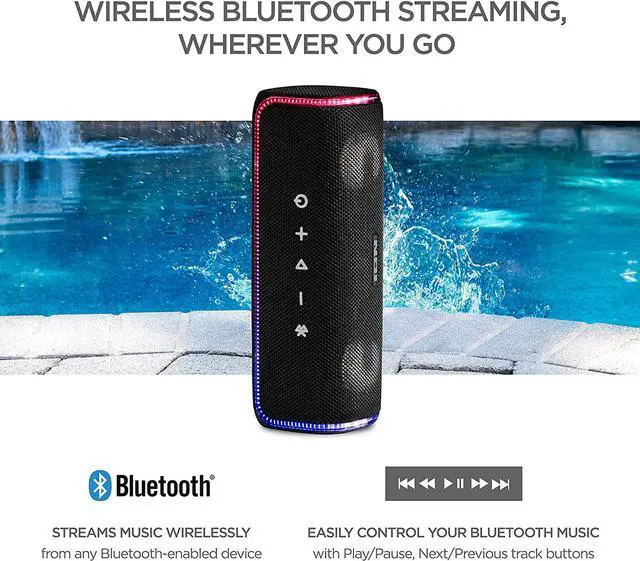 Wireless Bluetooth Speaker Streaming, Wherever You Go Streams music wirelessly from any Bluetooth enabled device; Easily control your Bluetooth music with Play/Pause, Next/Previous track buttons