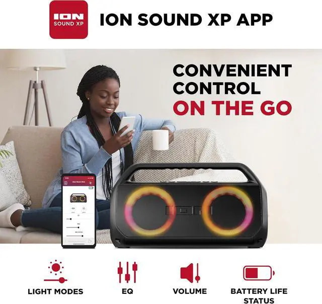 ION Sound XP App - Conveniently customize lighting, EQ, mic echo when in Karaoke Mode, as well as all sound functions right from your Android/iOS device for a more dynamic experience