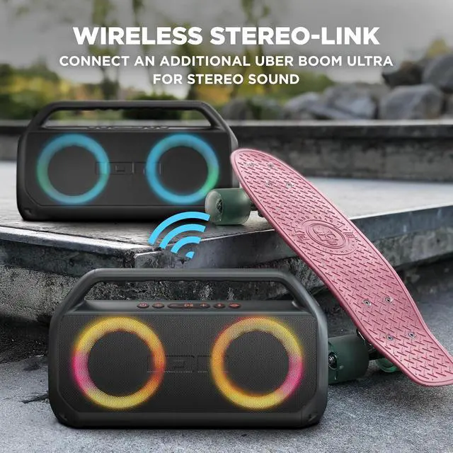 Active Fun - Built-in microphone provides hands-free call answering, so the fun never stops; use your Uber Boom Ultra while engaged in various sports activities, for karaoke, parties, camping and more