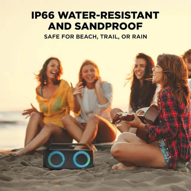 Portable Bluetooth Speaker - 80W sound system with dual 3.5" full-range speakers with 2 passive radiators; with rechargeable battery and built-in lights for endless karaoke parties and fun on-the-go