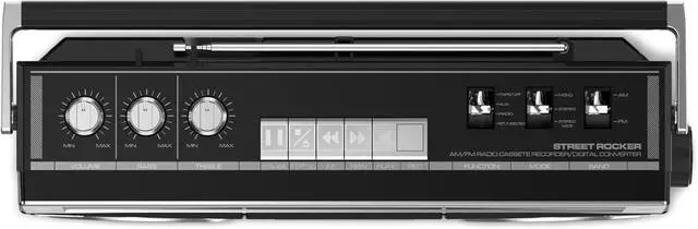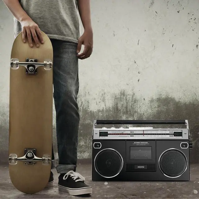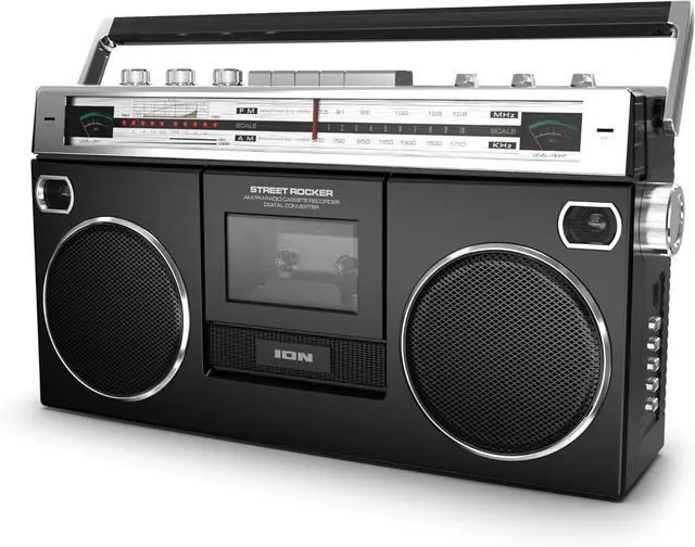 RETRO 80'S VINTAGE - Ion Audio Street Rocker 1980s style retro stereo cassette boombox Stereo cassette plays all the tapes in your collection,Records onto cassette from radio, built-in microphone or external source, classic boombox