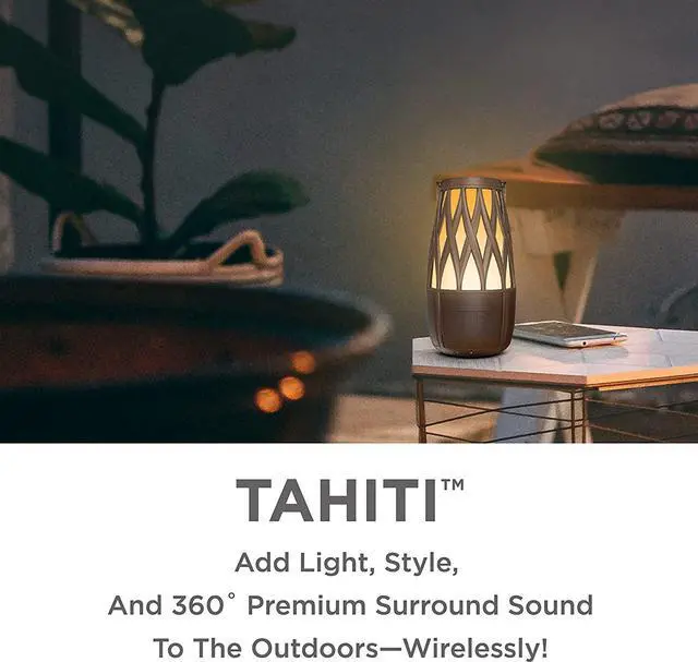 Your Music, outdoors With IPX 5 Water Resistancy, Tahiti is safe to leave in the rain, or by the pool, perfect for pool parties, BBQs, and gatherings
